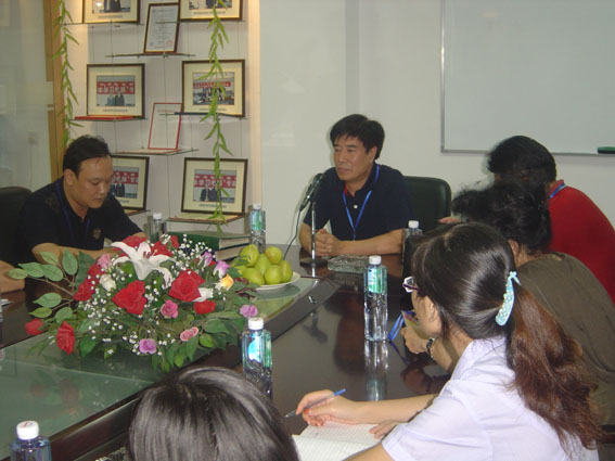 | 中國教育部教學儀器研究所王富司長在公司認真聽取尹守?偨(jīng)理的工作匯報 |